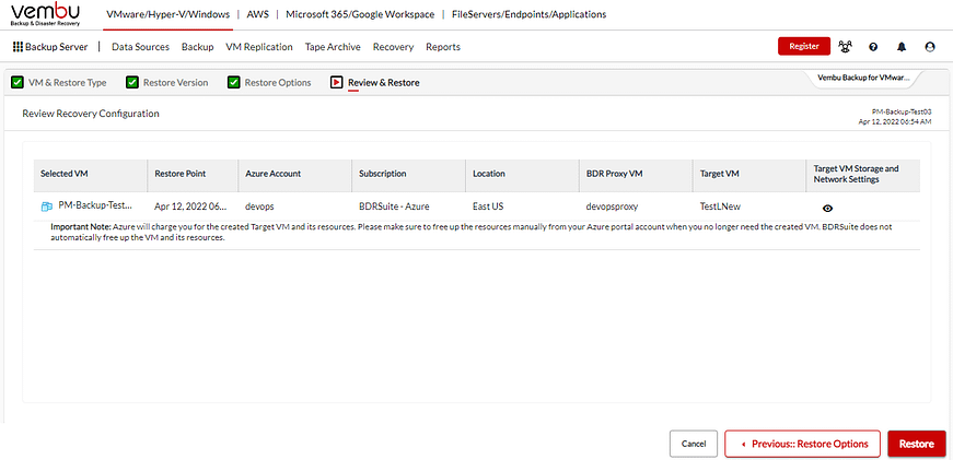 Among the stand out features in my opinion released in this version is Restore to Azure, allowing customers who have experienced significant disruption, or corruption to spin up the recovery VM or workload in Azure directly, this is massive as it ultimately saves a mountain of time. Before, you would typically need to restore the VM, test it, and then migrate it to Azure. Depending on the size of the VM, or workload – this could take a significant amount of time for the copy process alone and it is not always guaranteed to work the same once it reaches its final destination. A much needed and handy feature, allowing a faster RTO for the business.